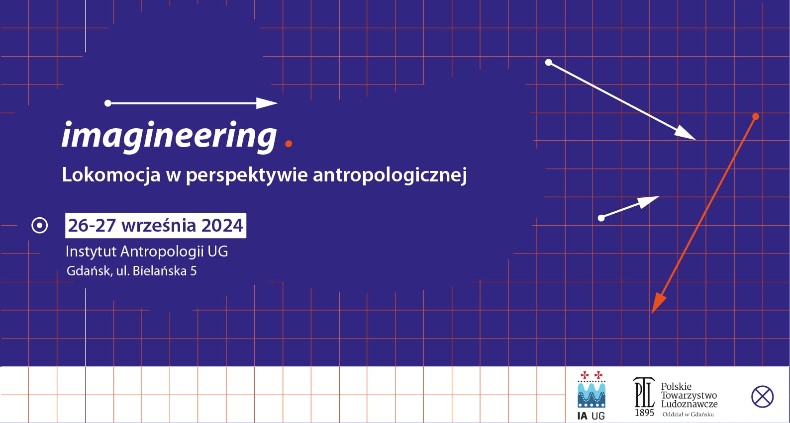 Instytut Antropologii Uniwersytetu Gdańskiego oraz Polskie Towarzystwo Ludoznawcze Oddział Gdańsk zapraszają na ogólnopolską konferencję naukową "Imagineering. Lokomocja w perspektywie antropologicznej", która odbędzie się 26 i 27 września 2024 r. w Gdańsku, w siedzibie Instytutu Antropologii UG przy ul. Bielańskiej 5, w sali 30.
